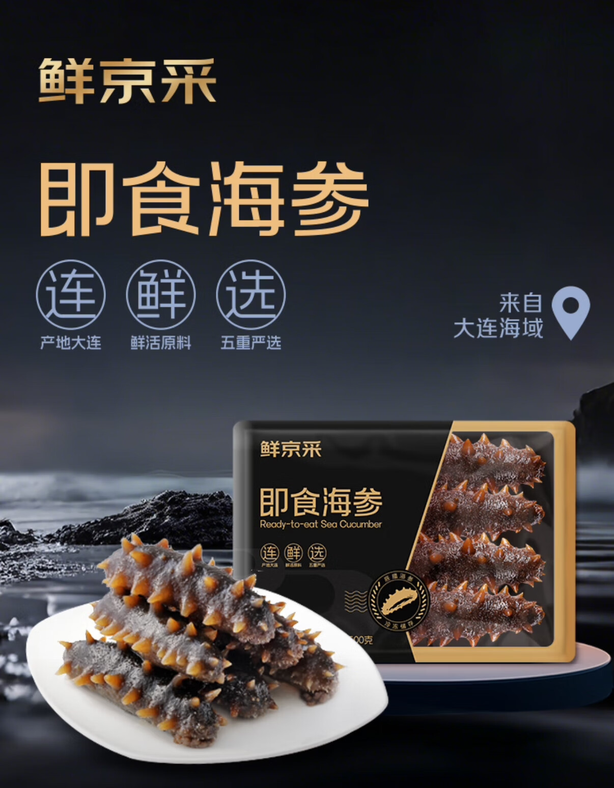 京东自有品牌鲜京采黑金系列的即食海参,