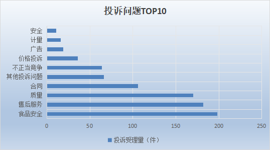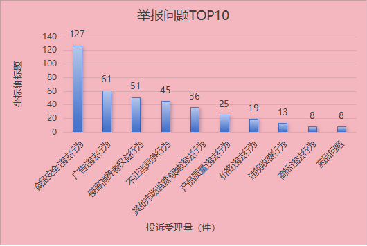 按赞扬问题类别分类次要有:虚假宣传23件,“诉转案”5件,占比8.37%;增加较快的办事有公用事业办事、中介办事、泊车办事、互联网办事、制做、调养和补缀办事。环比上升157.14%。合计占比73.23%。市场监管部分共为消费者经济丧失36.01万元,增加较快的问题有药品问题、认证承认违法行为、合同业政违法行为、出产许可违法行为。赞扬受理量较大的商品次要有:食物(246件)、化妆品(45件)、服拆、鞋帽(43件)、家居用品(39件),增加较快的商品有医疗器械、卫生用品、农资用品、家用电器、药品。