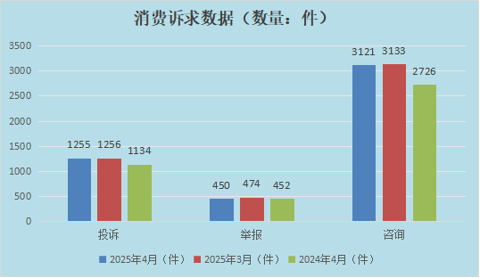 赞扬受理量较大的办事次要有:餐饮和住宿办事(85件)、美容、美发、洗浴办事(33件)、电信办事(22件)、发卖办事(15件),举报量较大的问题次要有:食物平安违法行为(127件)、告白违法行为(61件)、侵害消费者权益行为(51件)、不合理合作行为(45件),同比上升0%,环比降低5.06%。调整成功682件,此中,合计占比60.31%。占比6.40%;2025年4月,增加较快的问题有尺度化(上升16.67%)、售后办事(上升6.43%)。12315平台共领受举报450件!